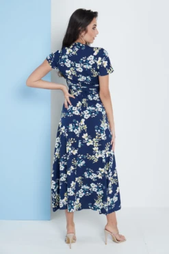 Goddiva Floral Print Midi With Flutter Sleeves – Powder Blue
