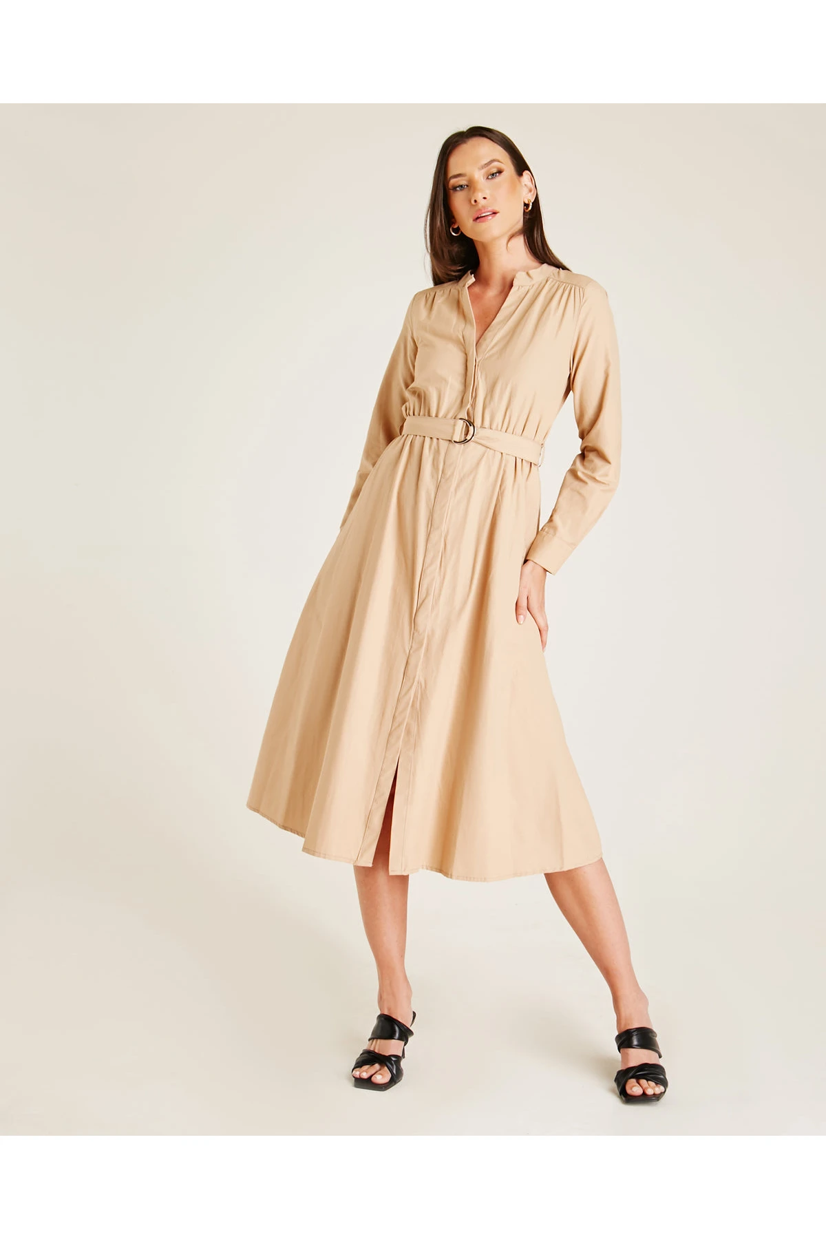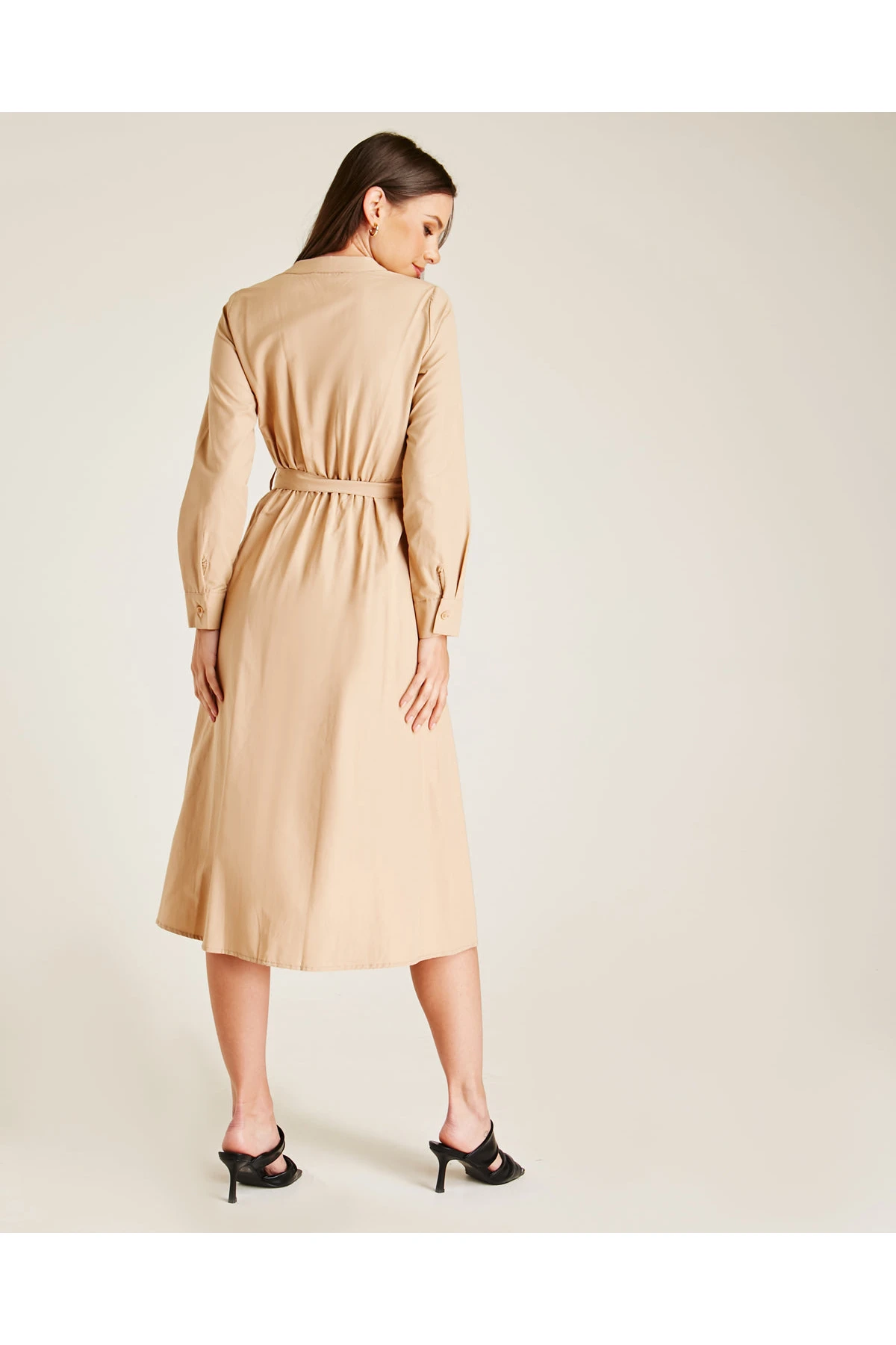 Dusty Pink Buttoned Front Belted Shirt Dress | Beige