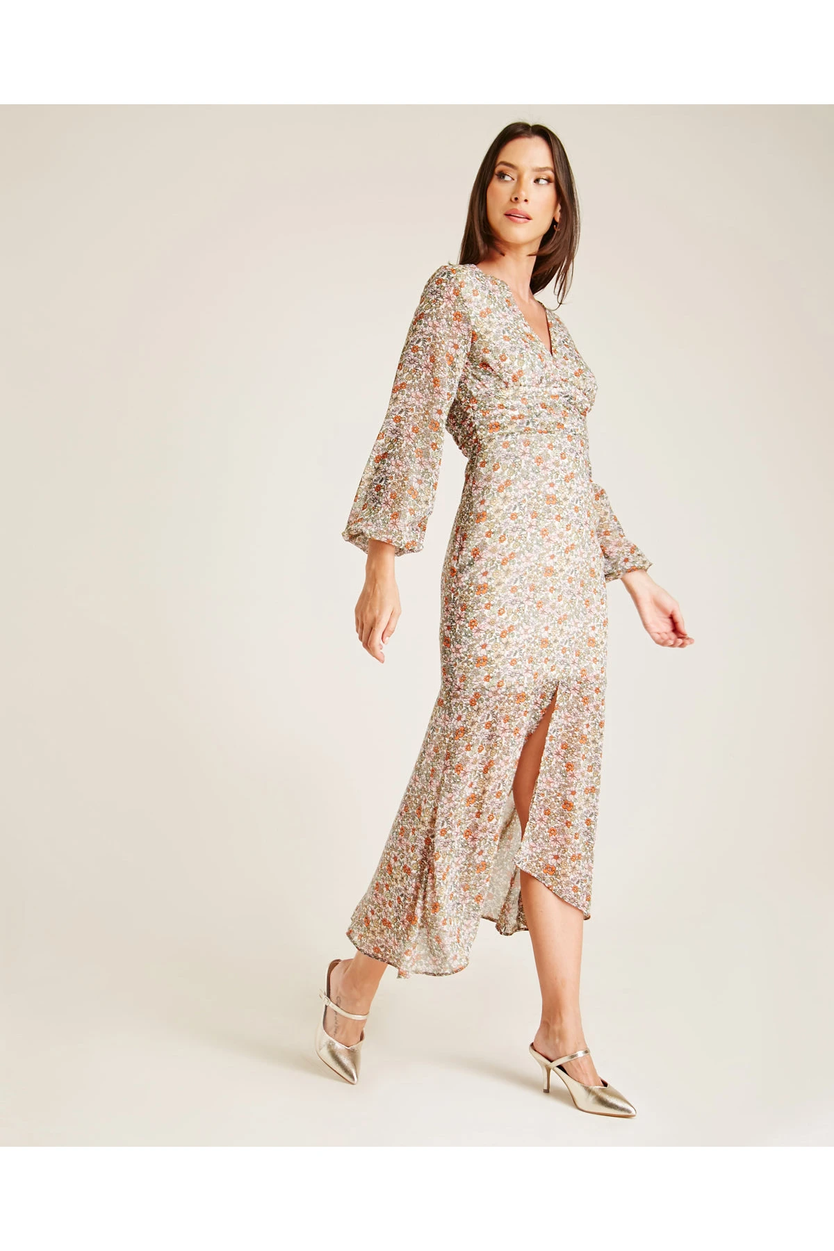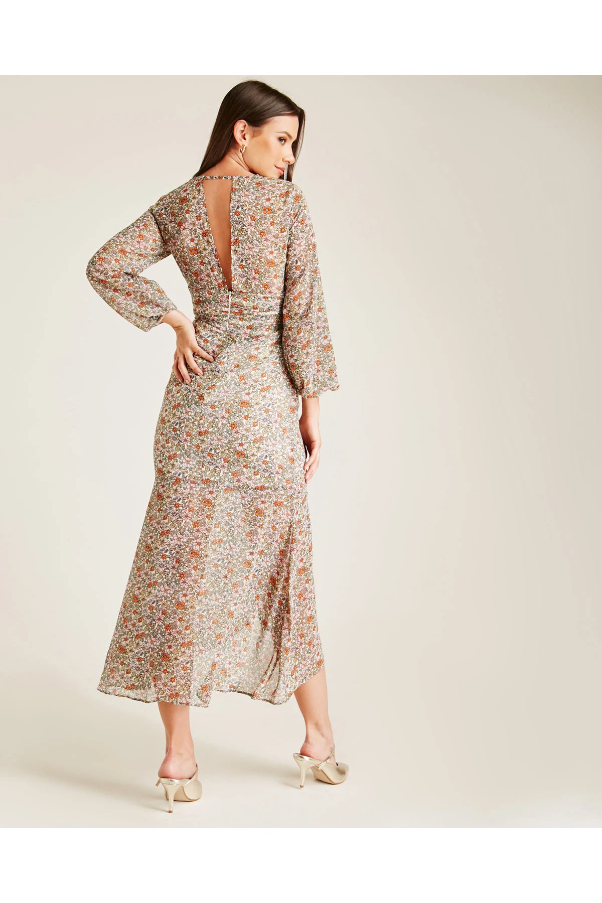 Lilura London Wrap Front Split Leg Maxi Dress In Black Daisy