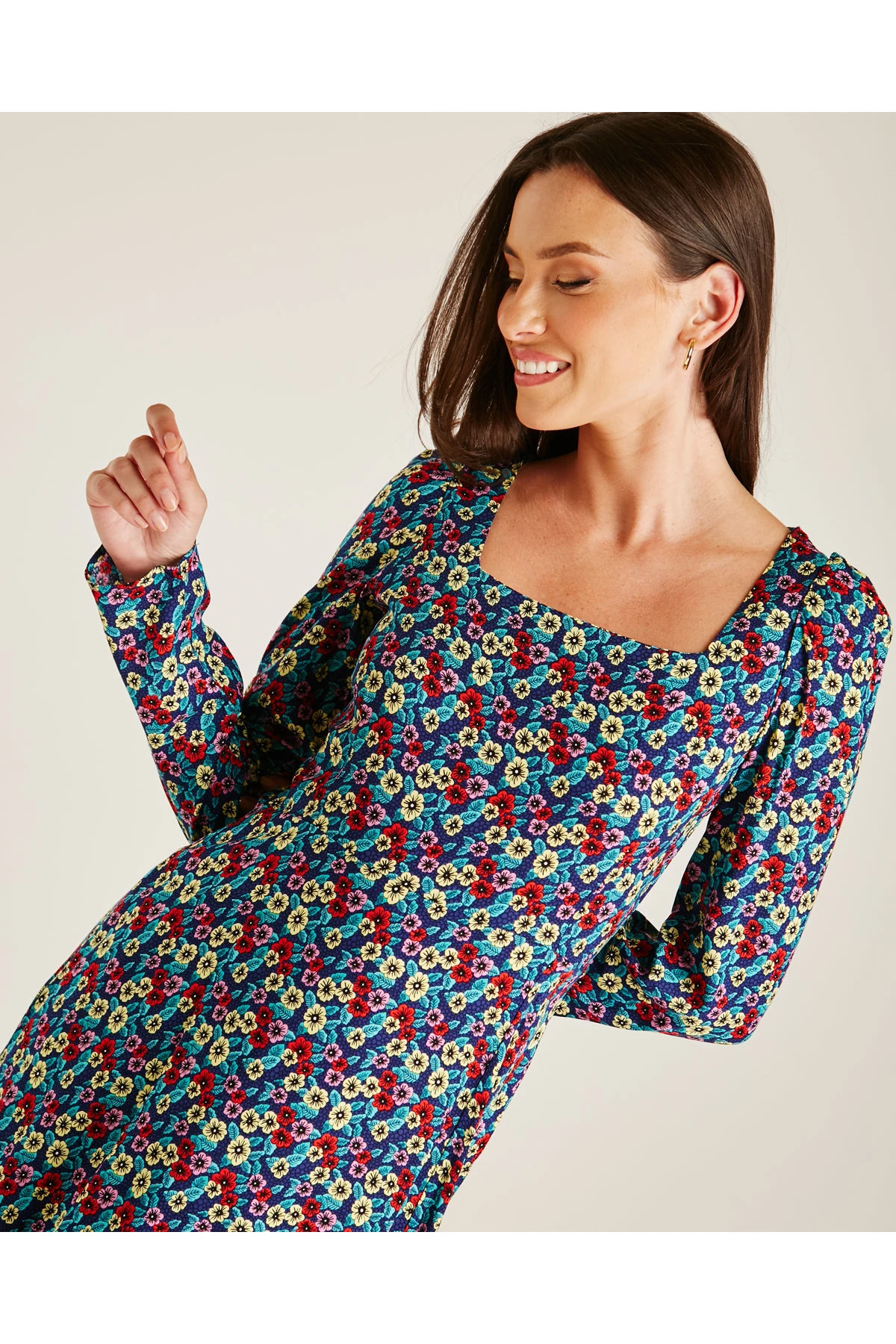Dusty Pink Floral Long Sleeve Slit Dress | Navy