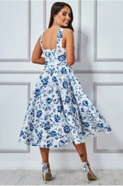 Goddiva Floral Print Midi With Flutter Sleeves – Powder Blue