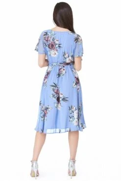 Goddiva Floral Print Midi With Flutter Sleeves – Powder Blue