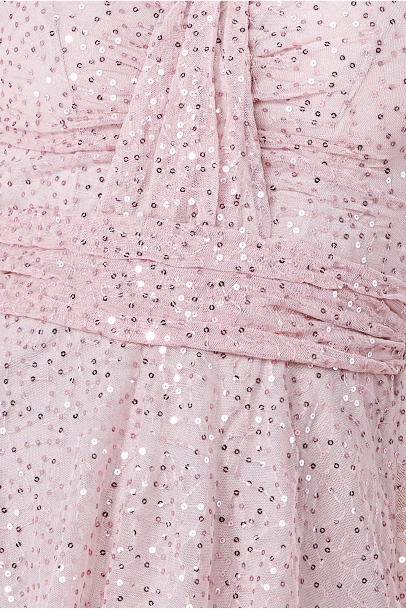 Goddiva Bandeau Sequin & Mesh Maxi Dress – Blush