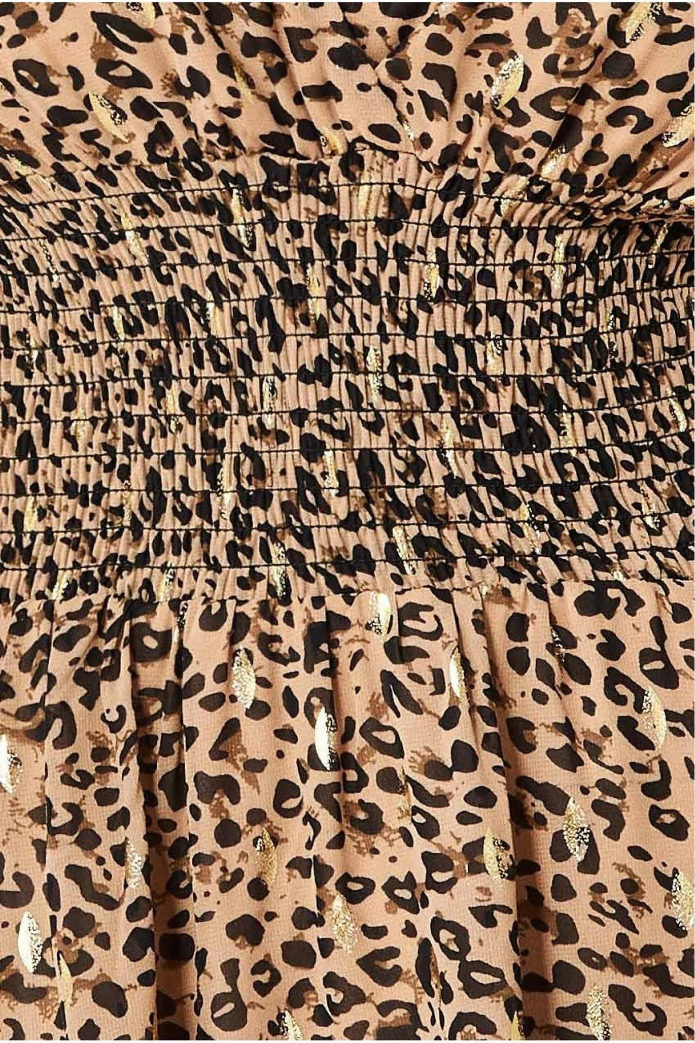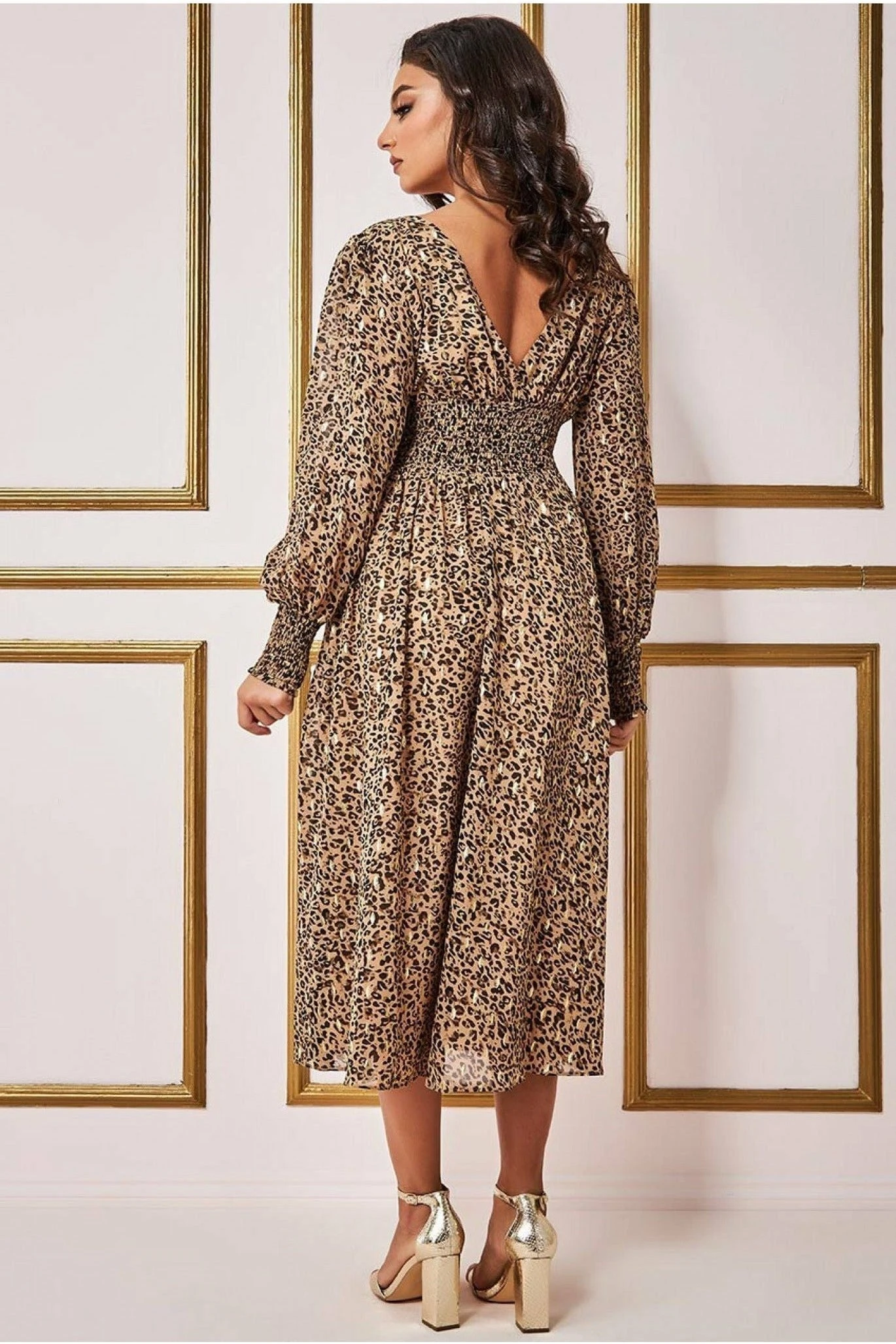 Goddiva Long Sleeve Midi Shirred Waistband – Animal Print