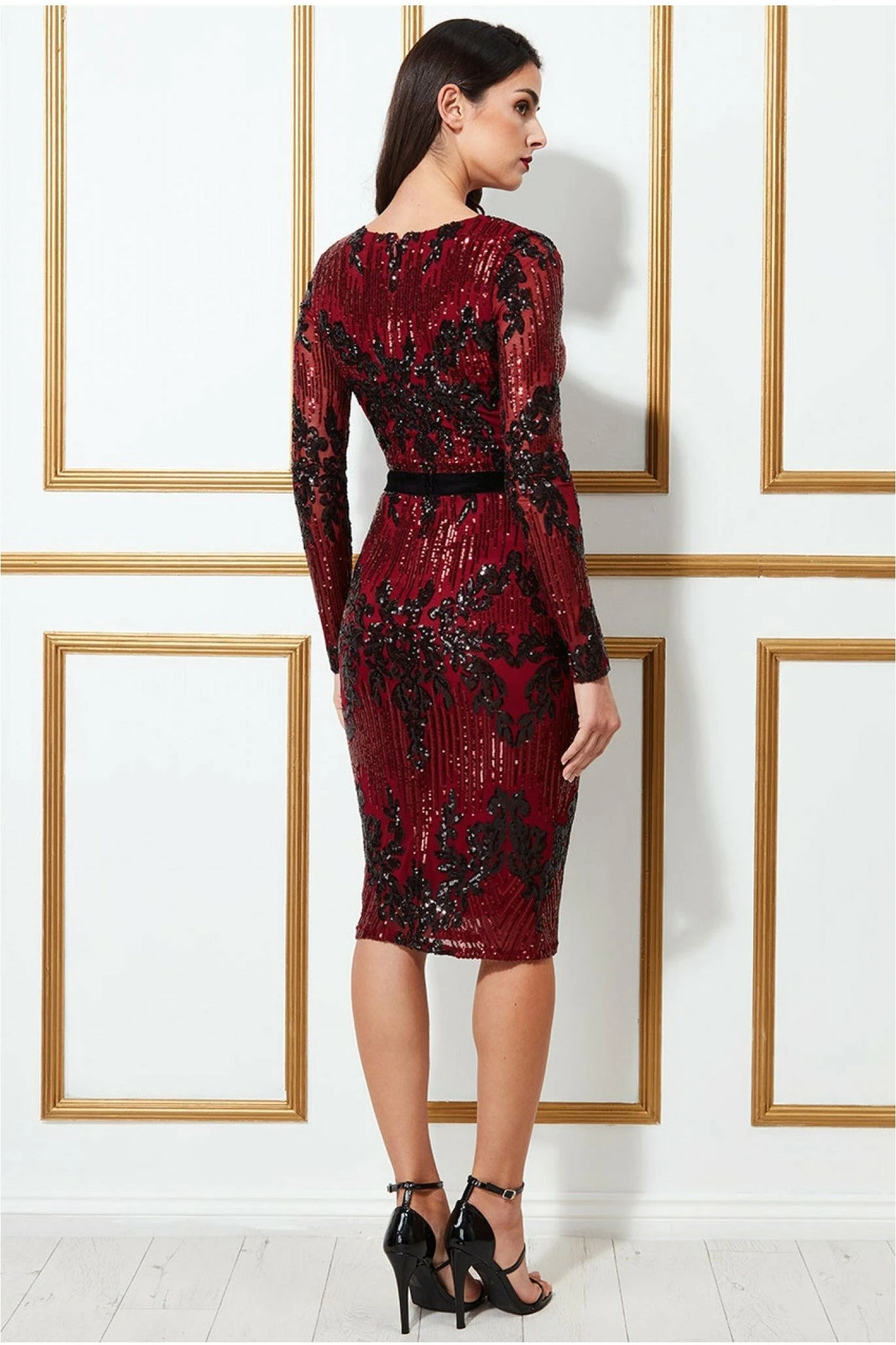 Goddiva Long Sleeve Sequin Party Midi Dress – Wine