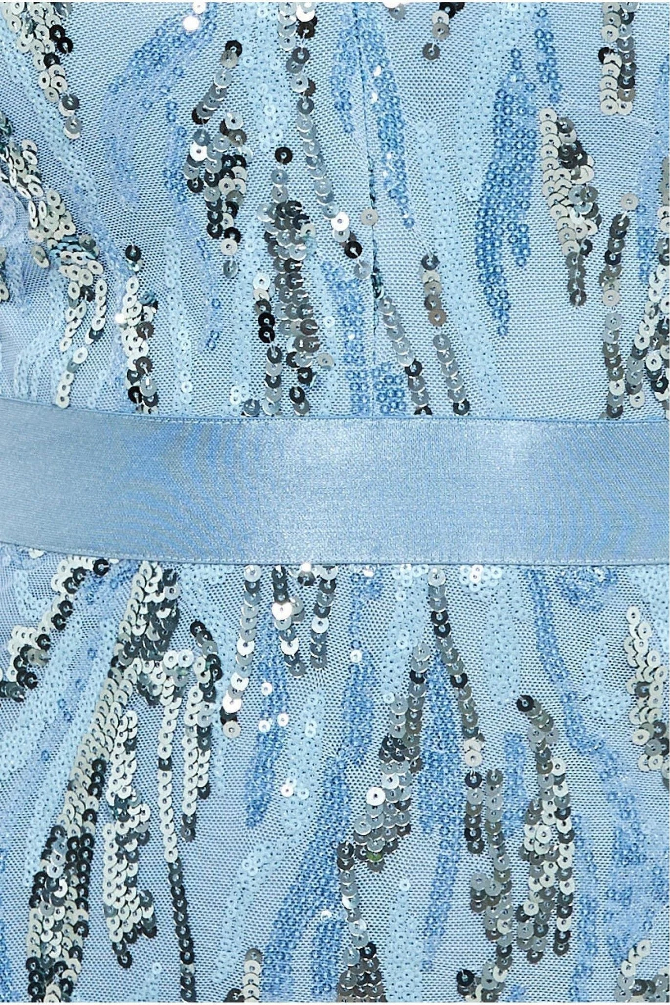 Goddiva Long Sleeve V-neck Sequin Maxi – Powder Blue