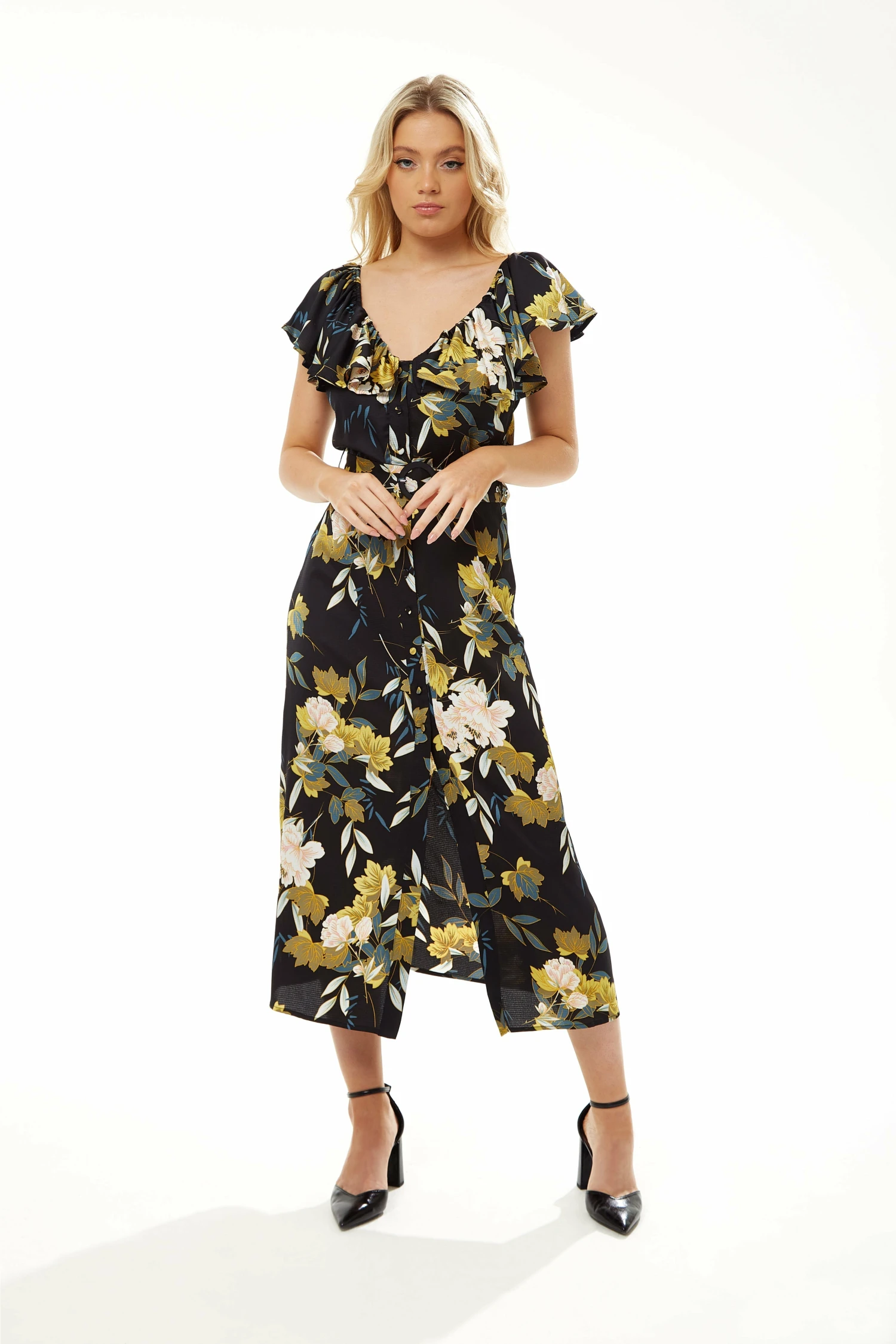 – Frill details at shoulders