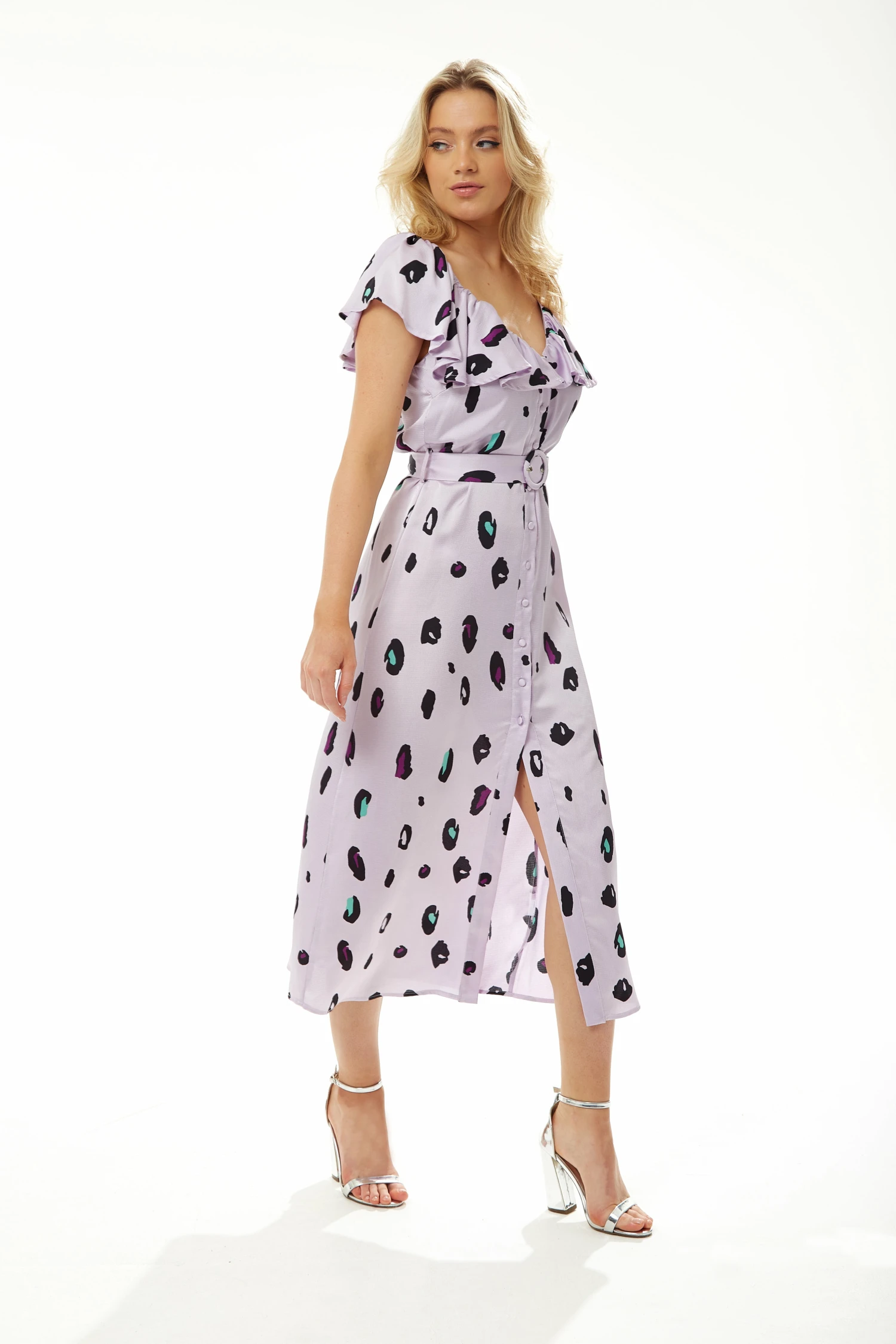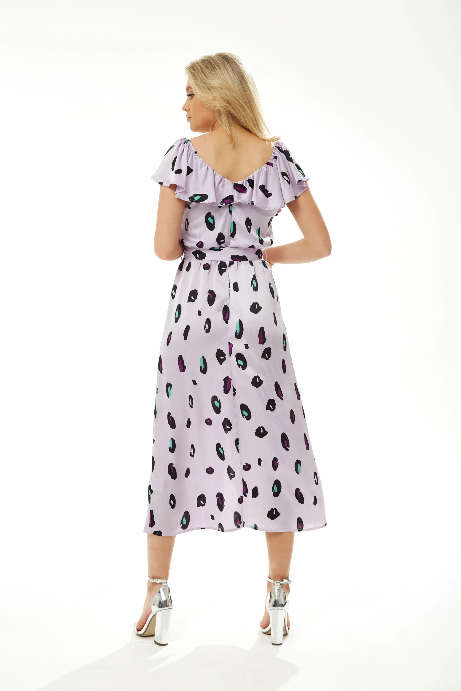 Liquorish Belted Midi Dress Off Shoulder Sleeves In Lilac