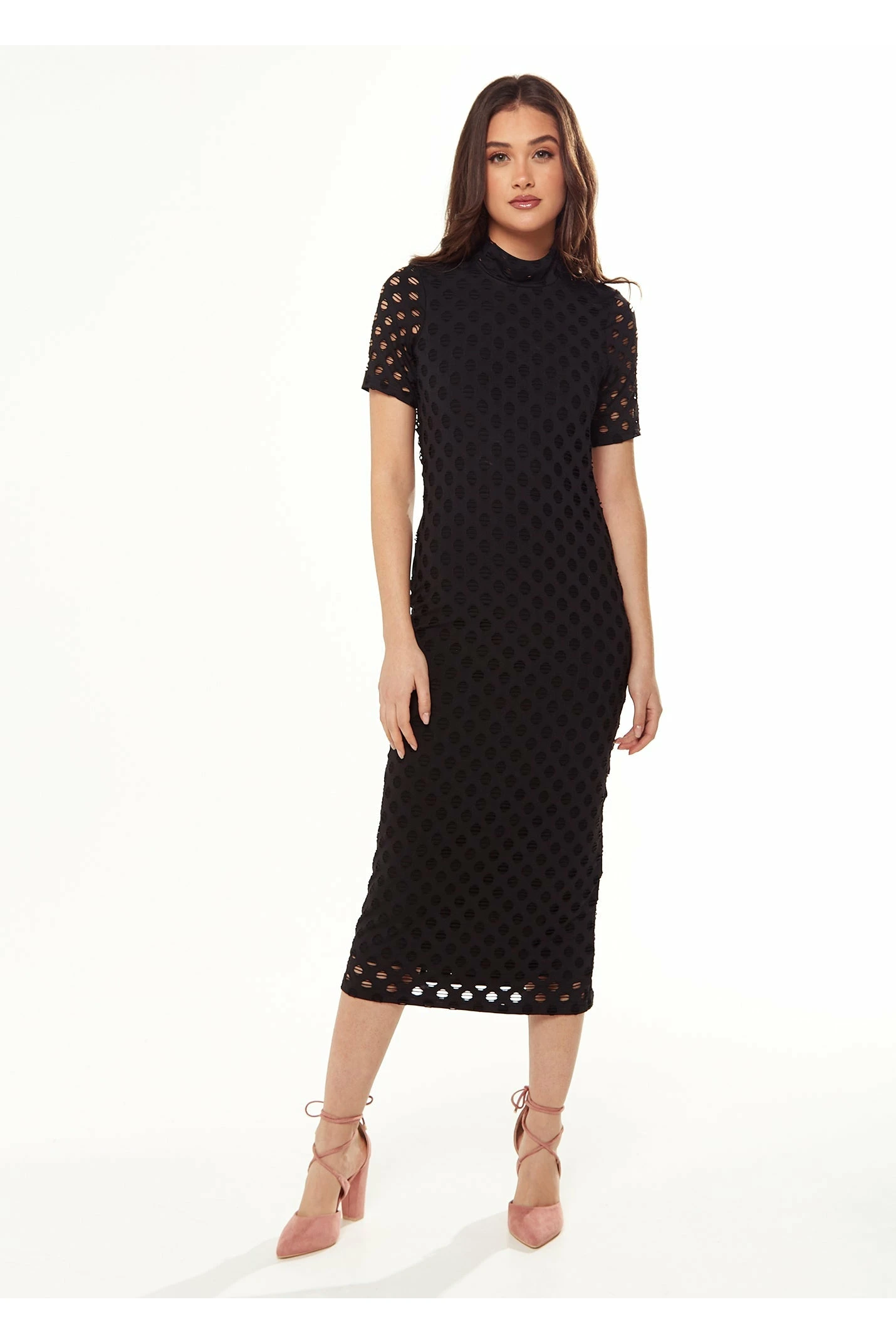 Liquorish Midi Dress High Neck Open Back Detail Black