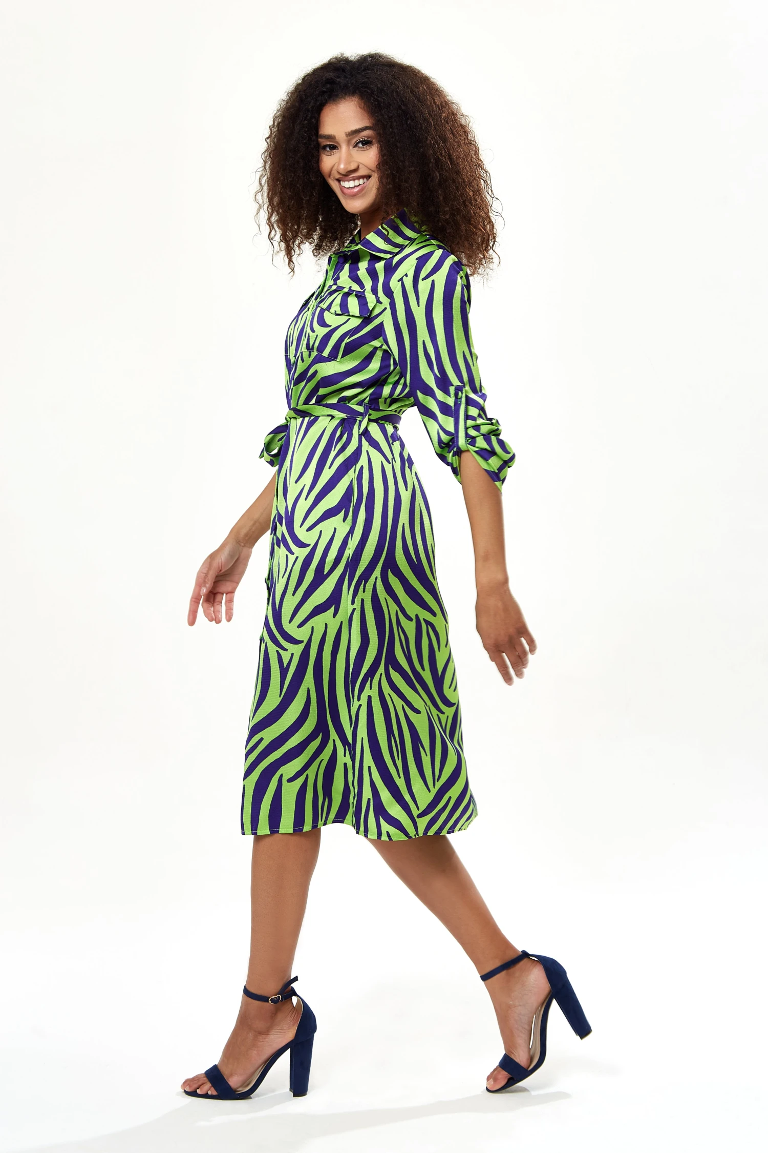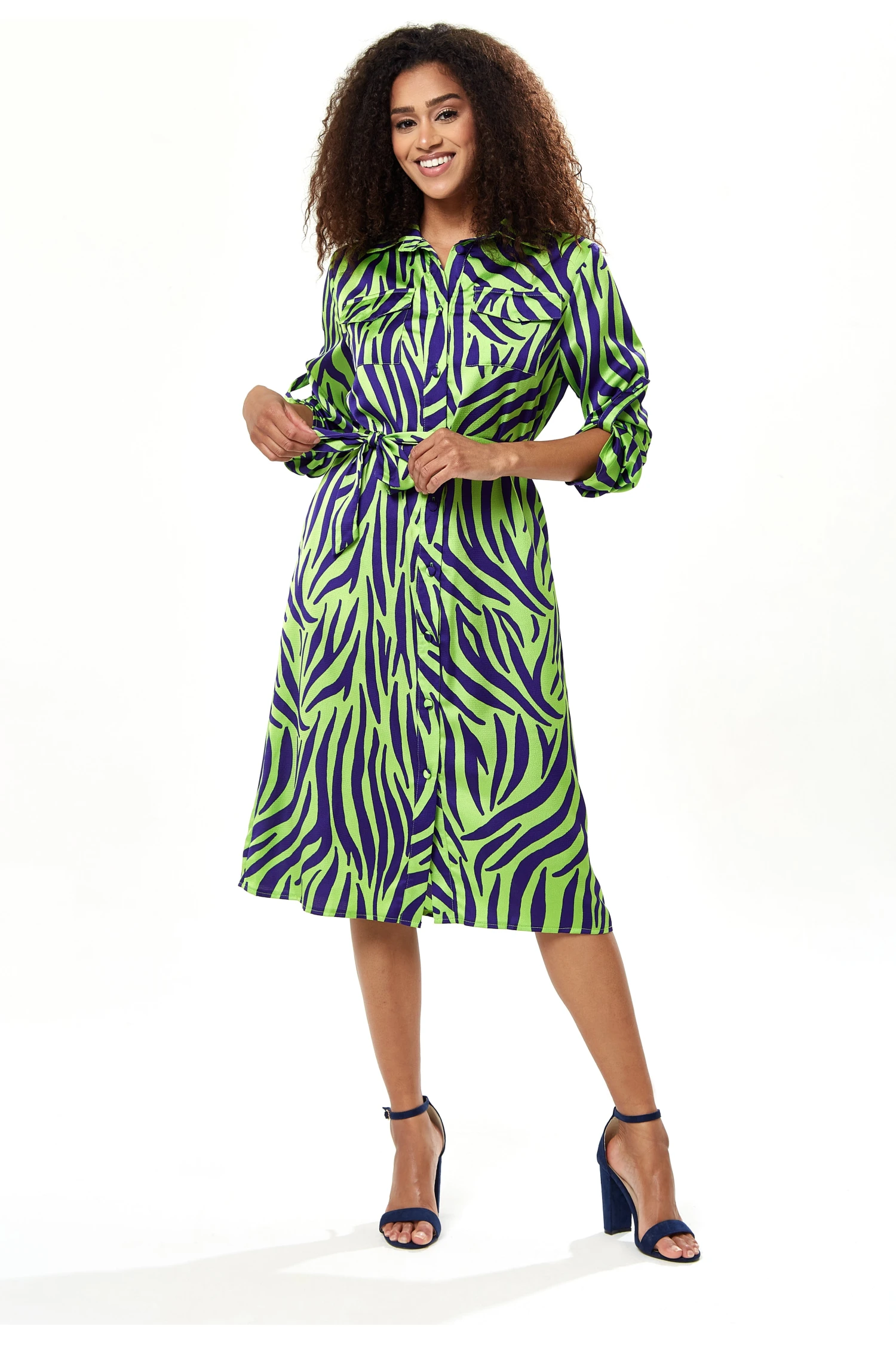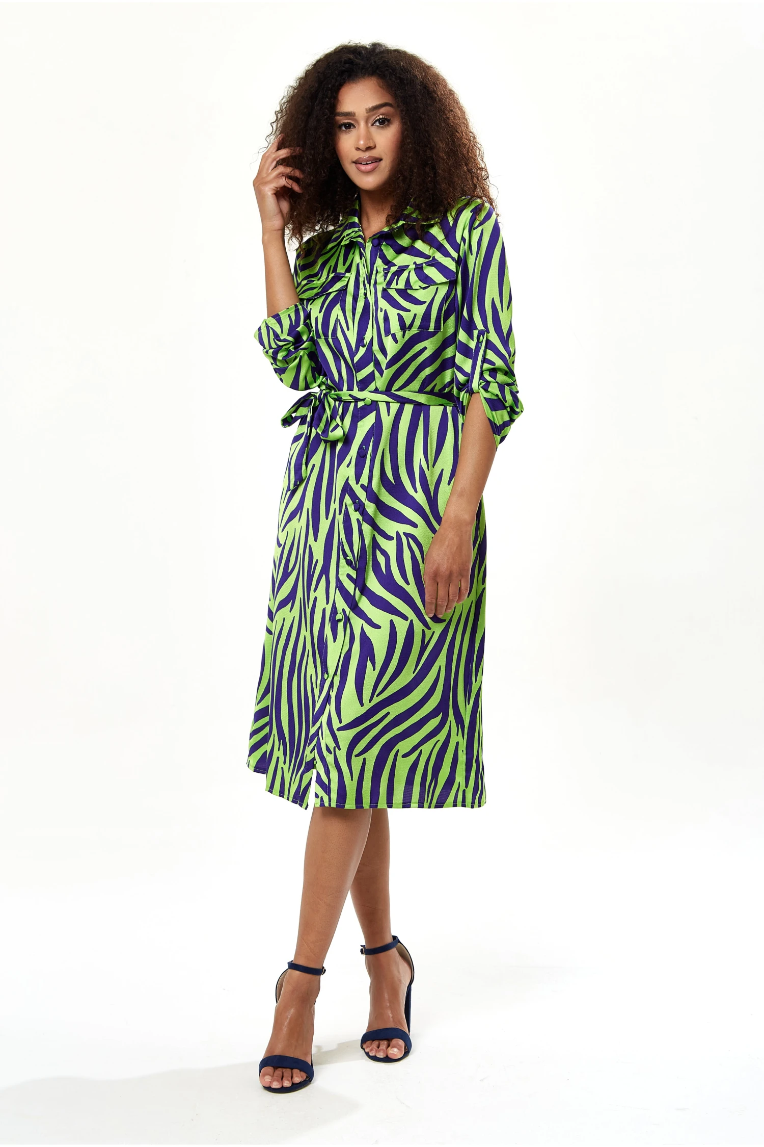 Liquorish Mint And Blue Zebra Print Midi Shirt Dress