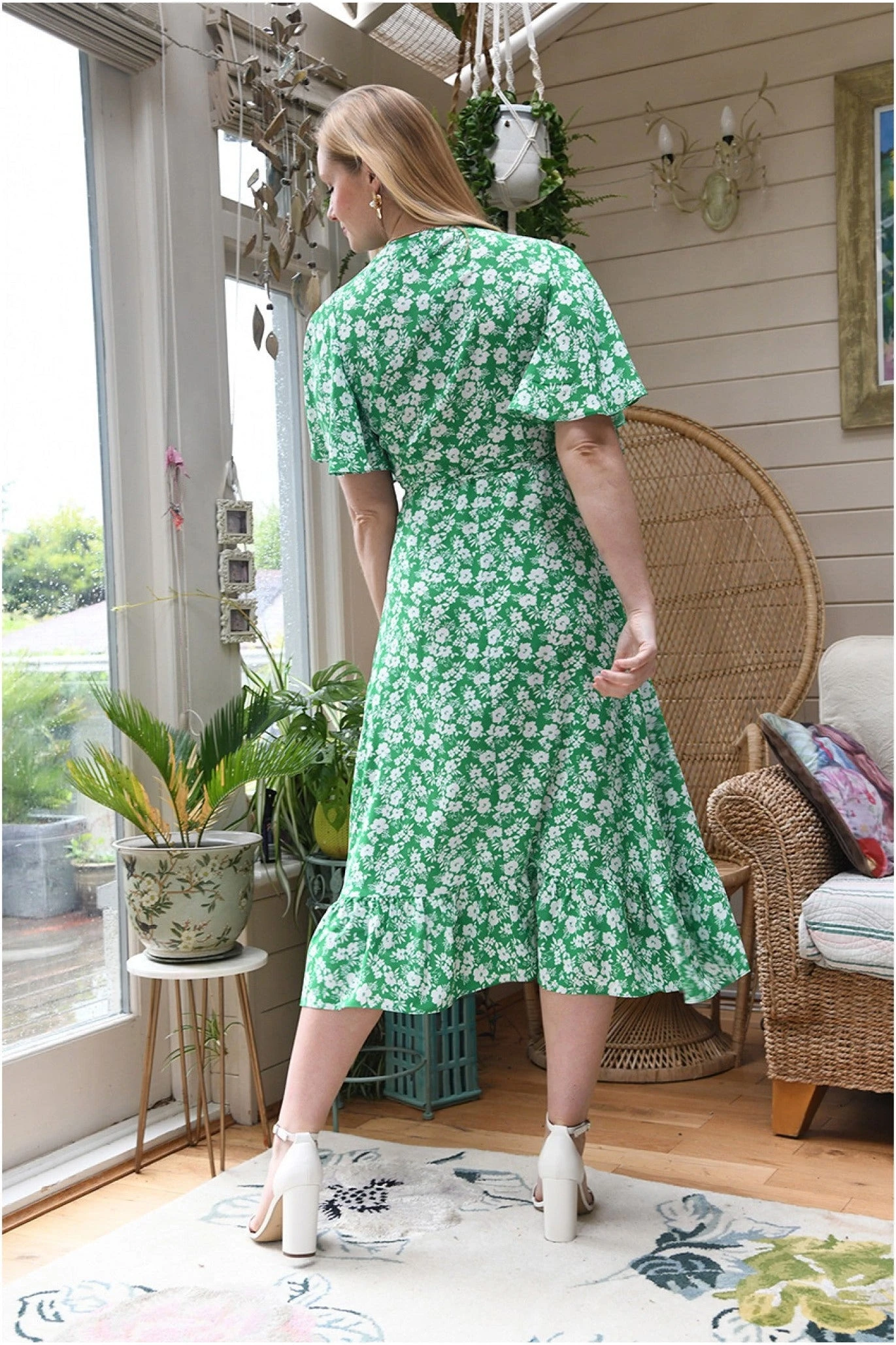 Mela London Green Ditsy Daisy Wrap Effect Frill Dress