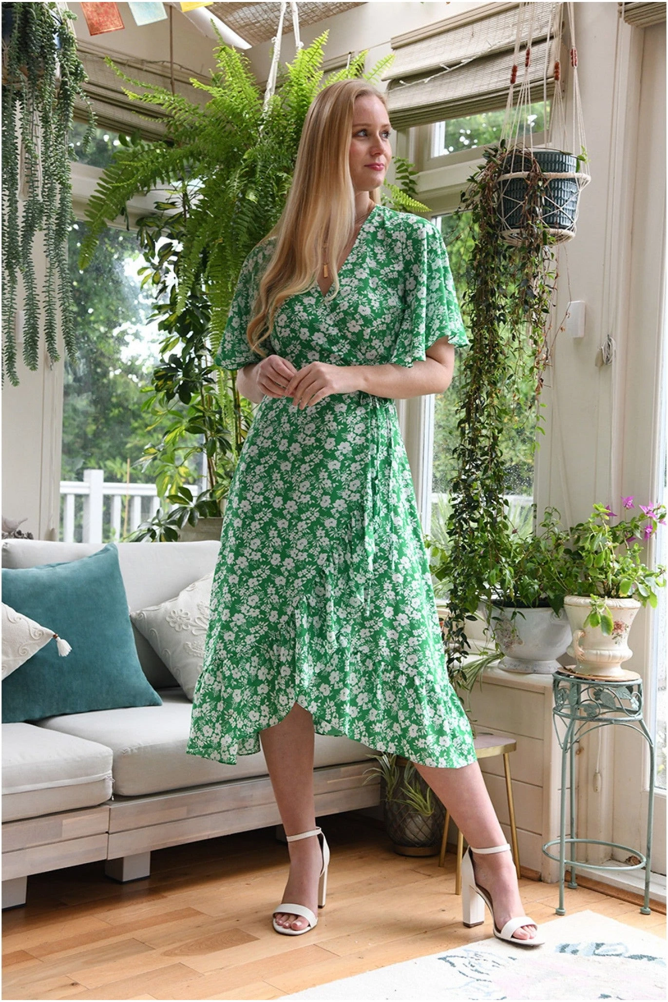 casual, or chunky heels to dress it up, The Mela Green Ditsy Daisy Wrap
