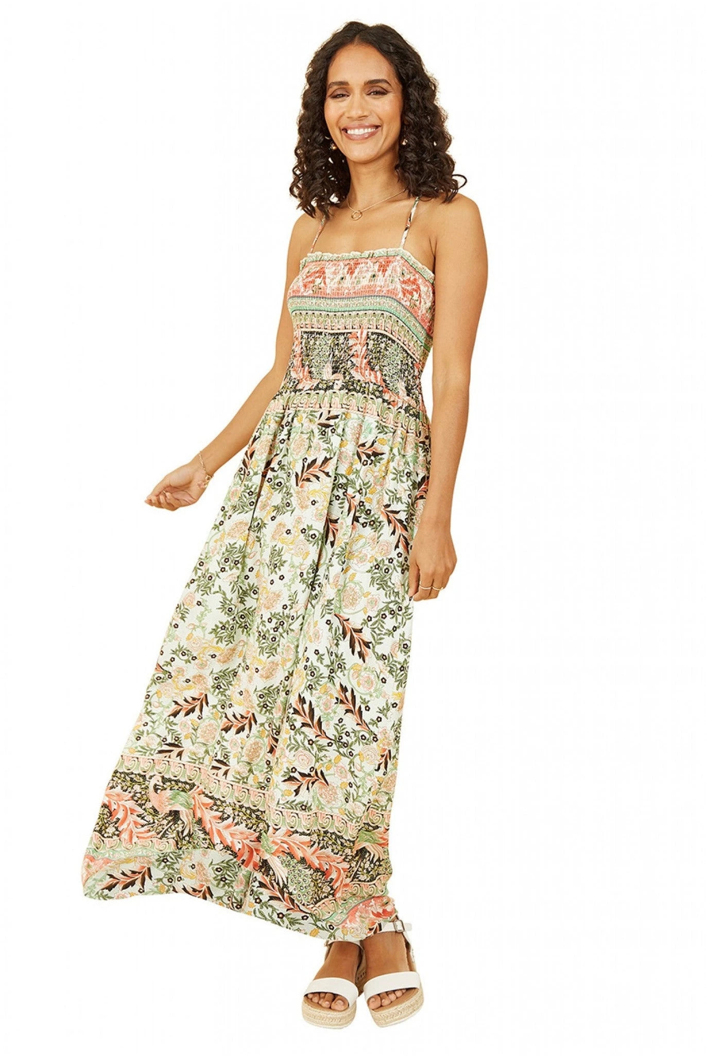 Mela London Green Paisley Shirred Maxi Dress