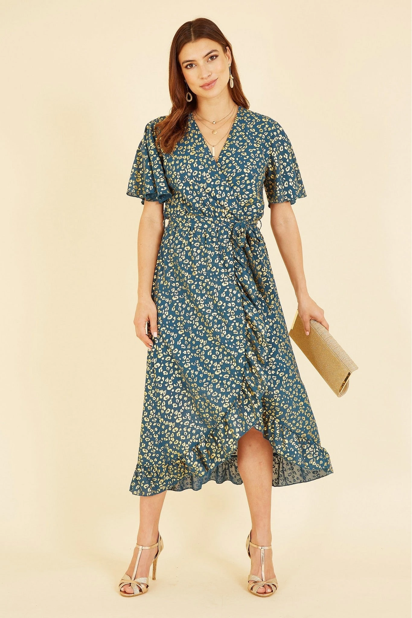 Be the first to review “Mela London Teal Leopard Foil Print Wrap Midi Dress” Cancel reply