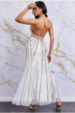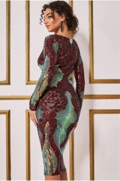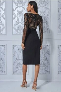 Goddiva Exclusive Sequin Bodice With Front Frill Midi- Black