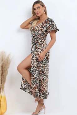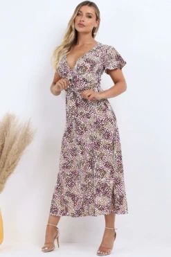 Lilura London Wrap Front Split Leg Maxi Dress In Multi Print
